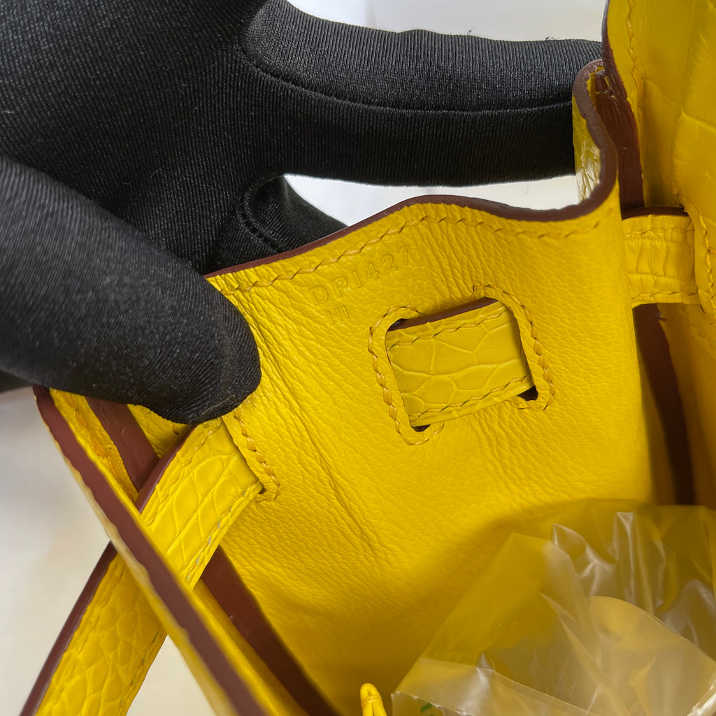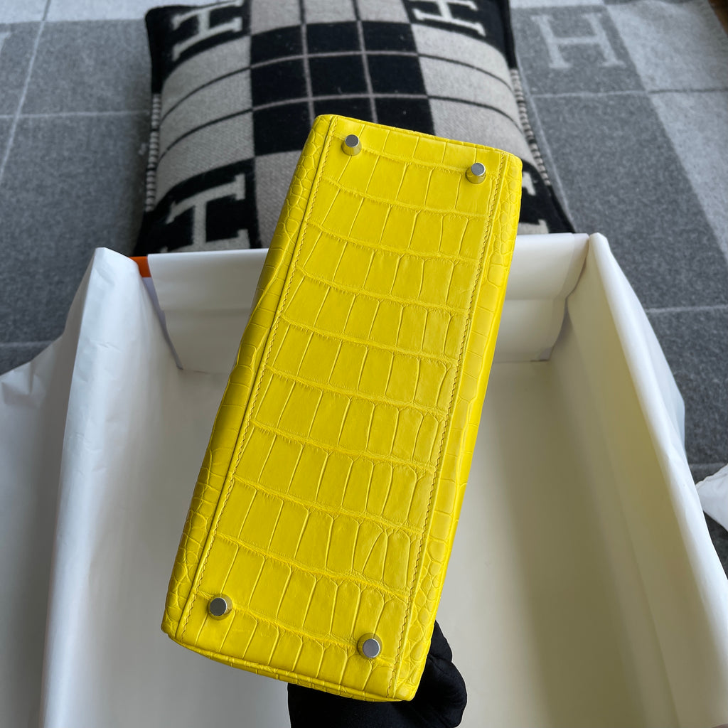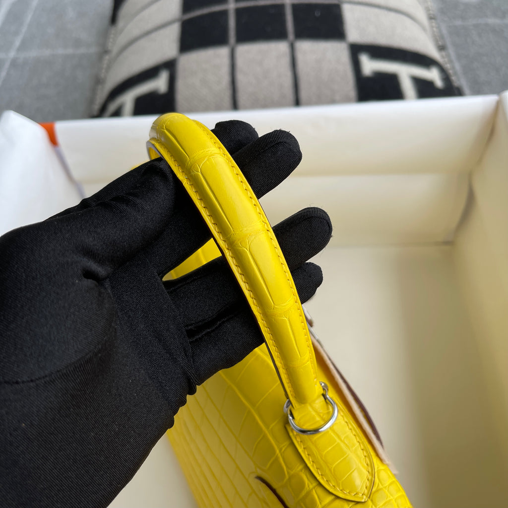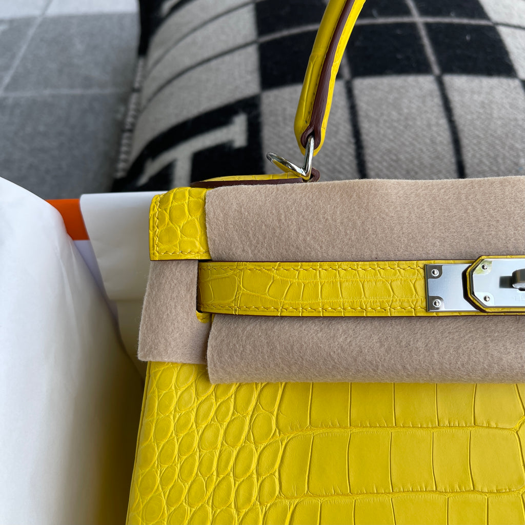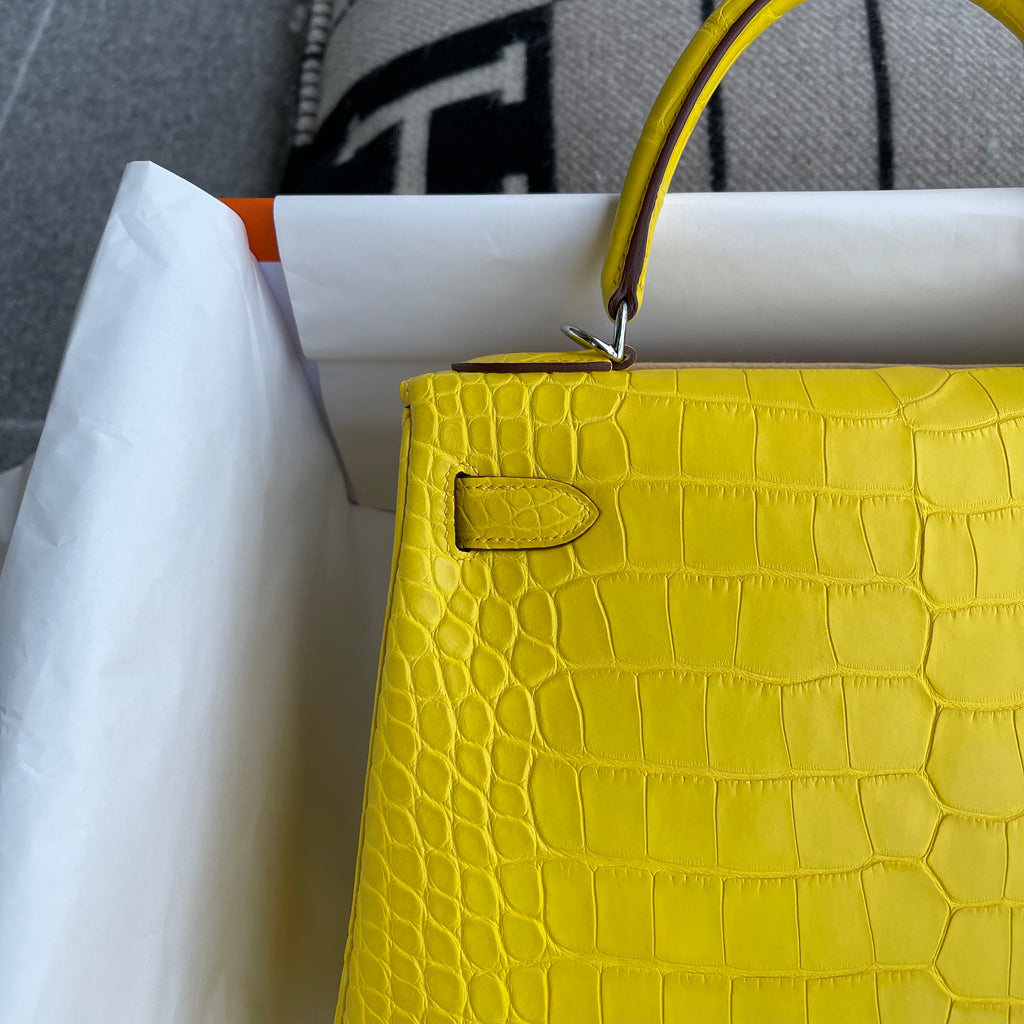 KELLY 28 MATTE MISSISSIPPIENSIS ALLIGATOR LEATHER MIMOSA WITH PALLADIU – ZAGAT BOUTIQUE